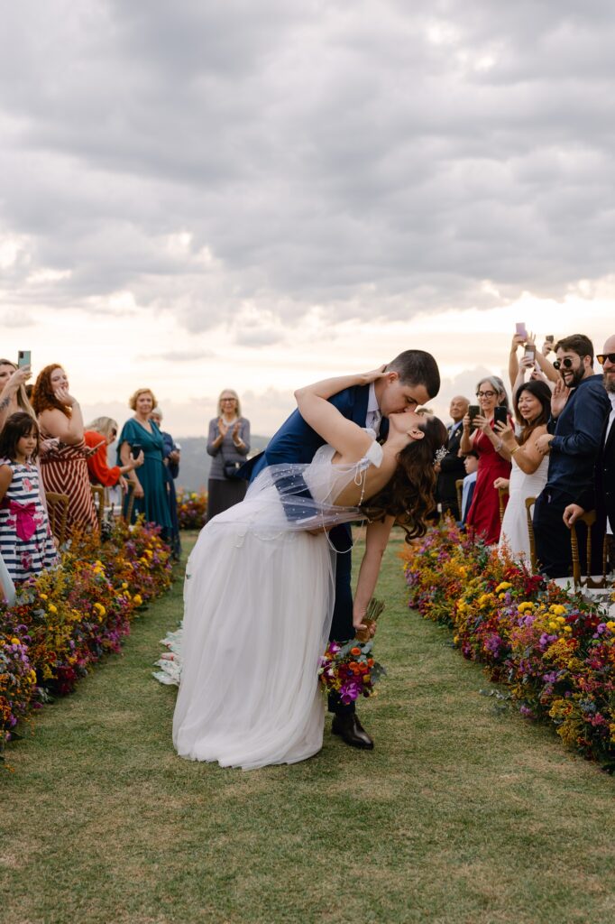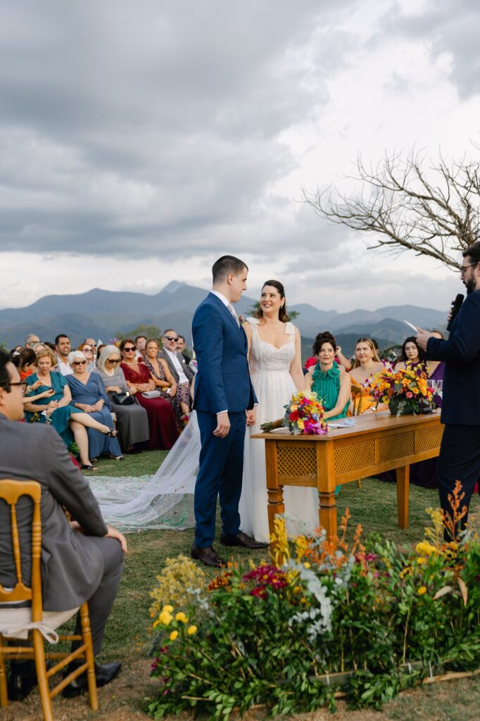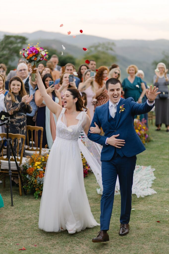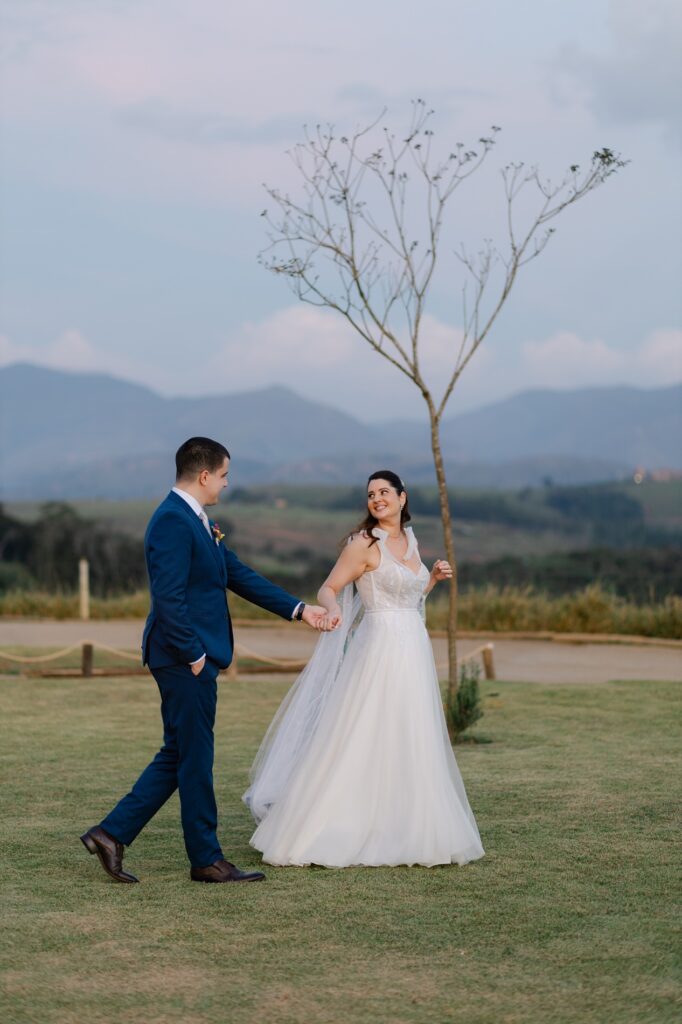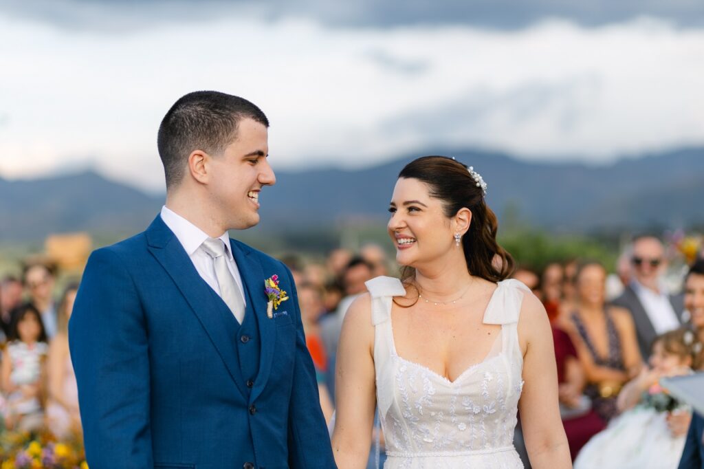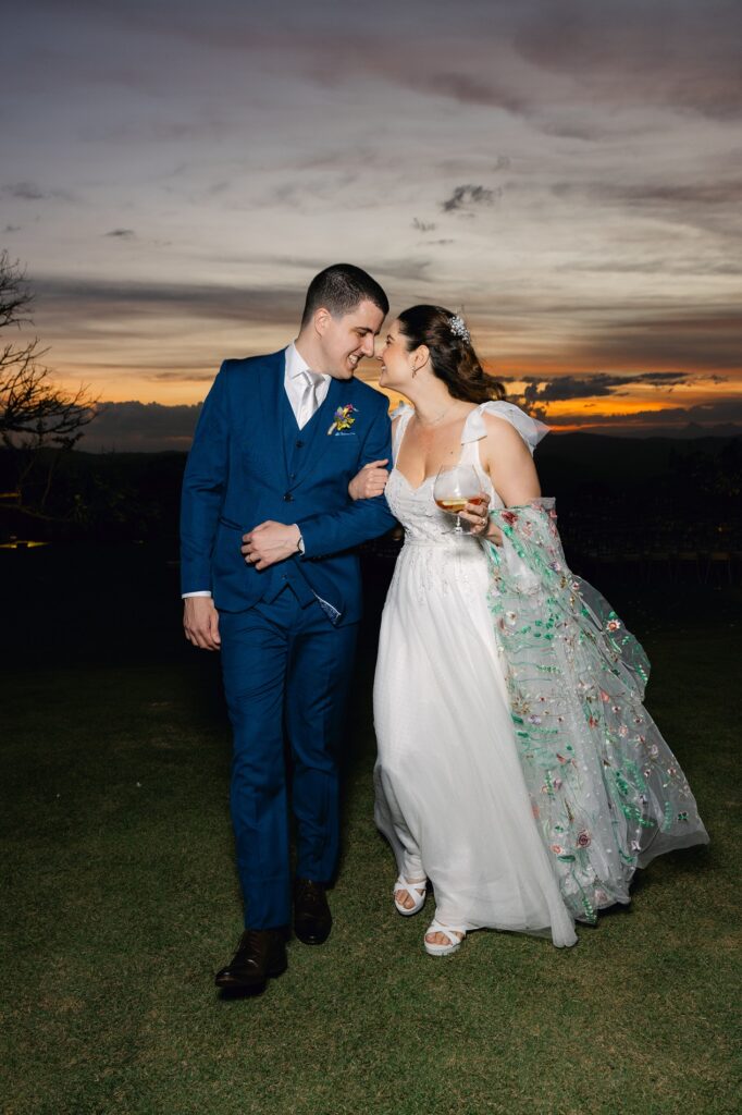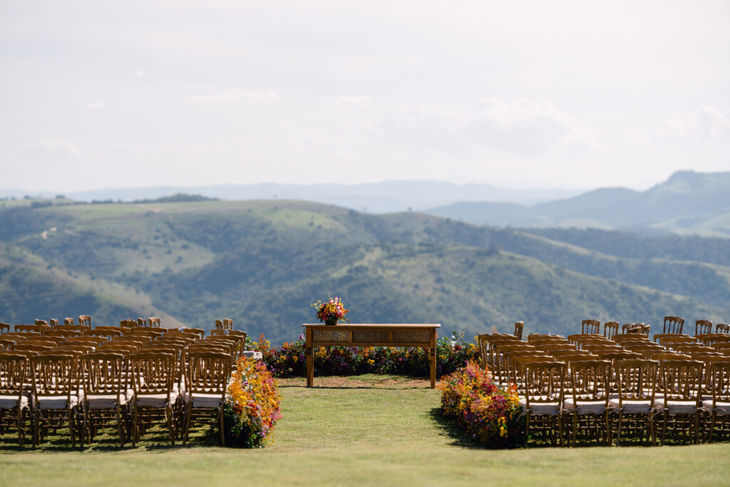 Quando o casal decidiu dizer “sim” no Brasil, sabia que queria um lugar que fosse mais do que bonito: precisava ter energia, natureza e aquele pôr do sol inesquecível. E foi o Celeiro Monte Alto quem conquistou o coração dos dois.