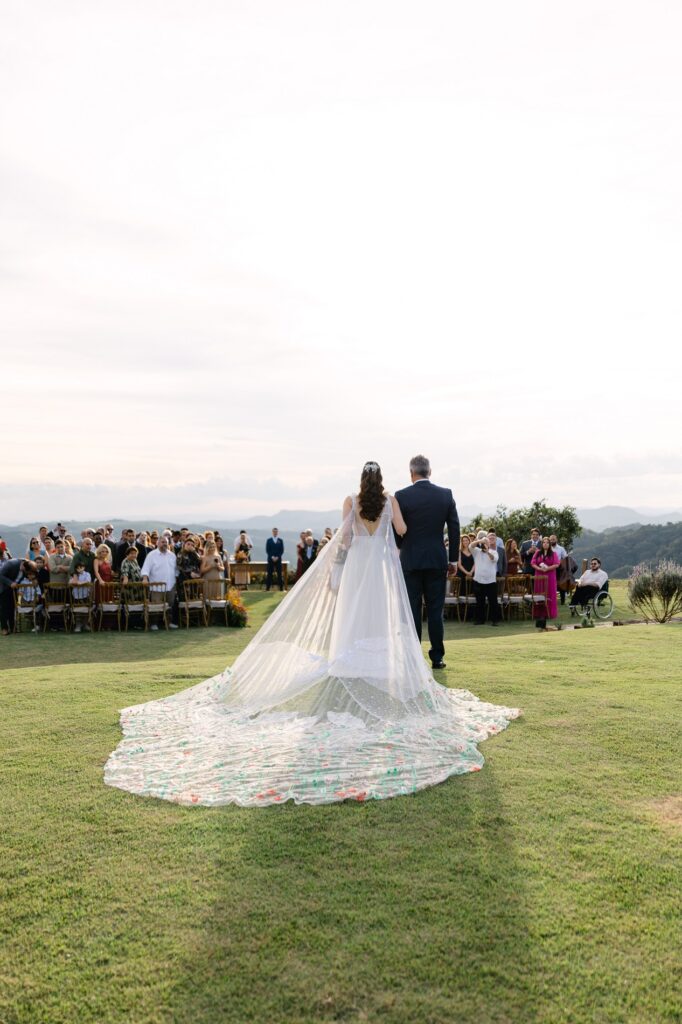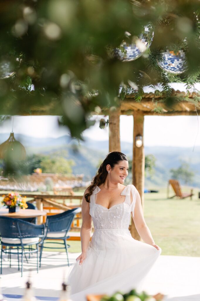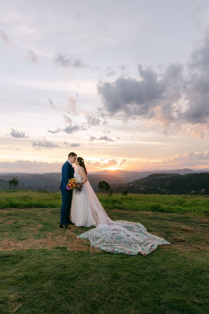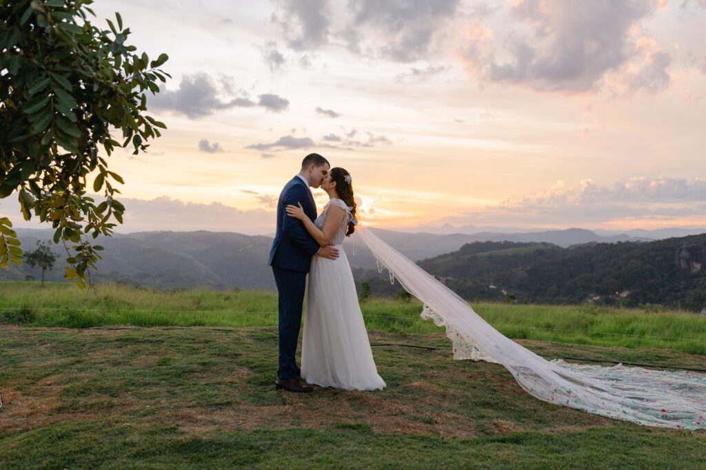 “O Celeiro tem um astral inexplicável. É preciso ver o pôr do sol lá para entender. Foi o cenário perfeito para o nosso grande dia.”, descreve a noiva.